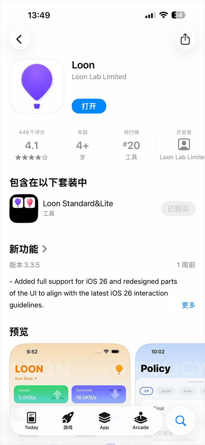 | 美区 App Store | USD 7.99 | 美区 App Store 下载 Loon |