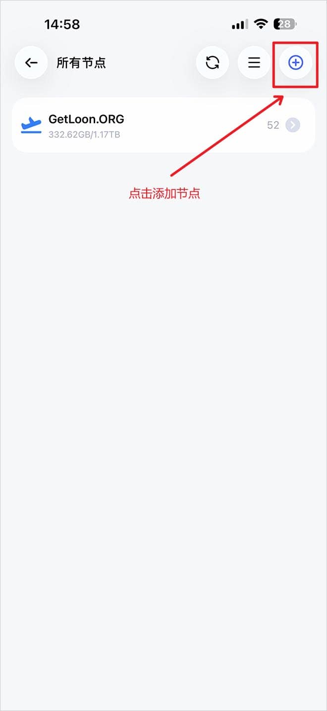 点击软件右上角的➕按钮添加节点,如下图所示: